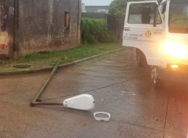El temporal de lluvia y vientos que comenzó esta madurgada en Salto, causó inconvenientes en algunos puntos de la ciudad. En la esquina de las calles Libertad y Berutti, cayó una columna de alumbrado público. Por fortuna, no hubo que lamentar personas heridas. Esta mañana, una cuadrilla de la Cooperativa Eléctrica trabajó en la zona y retiró el poste caído. El tránsito en la zona no se vio interrumpido.