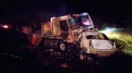 Un choque frontal  entre un camión y un auto ocurrido en una ruta cercana a la localidad de Bahía Blanca produjo tres muertos y el incendio de ambos rodados, en un accidente vial ocurrido esta madrugada, informaron fuentes policiales. El trágico incidente vial sucedió en la ruta provincial 51 a la altura del kilómetro 717 cuando por razones que se investigan chocaron de manera frontal un camión con acoplado que se dirigía a Comodoro Rivadavia contra un auto Renault Logan. Al embestirse de frente y transitar unos cien metros de la cinta asfáltica, ambos rodados se prendieron fuego. El chofer del camión, un hombre de 45 años, alcanzó a bajar por sus propios medios, pero los tres ocupantes del auto quedaron atrapados y murieron. La Policía procura identificar a las tres víctimas fatales. El conductor del camión no sufrió lesiones físicas, pero quedó inmerso en una crisis nerviosa. El hecho fue caratulado triple homicidio culposo con intervención de la UFI N° 1 del departamento judicial de Bahía Blanca. "El camión circulaba hacia Comodoro Rivadavia y el auto lo hacía en sentido contrario, desde Bahía Blanca hacia Cabildo. Por motivo que desconocemos, impactaron en la ruta, el camión lo arrastró cien metros hacia la banquina y luego se incendiaron ambos vehículos", señaló Leonel Torrero, de Defensa Civil, a LU2. Además, Torrero mencionó que "en ese tramo, la ruta y la banquina no se encuentran en buenas condiciones". También trabajaron en el lugar dos ambulancias del servicio de emergencias Siempre, bomberos de los cuarteles Alberdi, 6 de Septiembre y de Cabildo, Policía Vial y de Cabildo y personal de Tránsito Urbano.