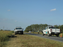 Una persecución policial de la que participaron efectivos de las ciudades de Salto y Arrecifes, terminó este jueves con un choque en la ruta provincial N° 191, mano a Salto. Todo comenzó con un llamado telefónico a la Estación de Policía Comunal en el que una persona alertaba sobre la circulación de dos motos sospechosas que se dirigían desde Salto hacia la vecina localidad. A raíz de ello, desde la Policía Comunal de Salto se solicitó colaboración a la fuerza de Arrecifes, que rápidamente implementó un retén en el ingreso a esa localidad. Al cabo de unos minutos, las dos motos arribaban a ese lugar. Sin embargo, al ver la presencia policial, los conductores giran en U y retornan hacia Salto. Los efectivos policiales intentaron cerrar el paso de los motociclistas que fugaban / Foto: Salto Hoy Fue en ese preciso momento en el que se dio inicio a una persecución que se extendió por más de 25 kilómetros, hasta finalizar aproximadamente a unos 5 kilómetros del acceso a Salto, lugar en el que la Policía de Salto, en un intento de cerrarles el paso a los motociclistas, rozan con el lateral izquierdo de un camión que circulaba en sentido Arrecifes-Salto. La maniobra ocasionó que uno de los motociclistas que venía en fuga perdiera el control y cayera sobre la banquina, mientras que el otro logró seguir su camino y huir del lugar. "Yo soy de Entre Ríos, vi cómo las motos venían zigzagueando y la policía los venía persiguiendo. El patrullero que ves ahí quiso encerrarlos y el pibe se terminó cayendo solo; el móvil se rozó conmigo", dijo a este diario el conductor del camión, quien resultó ileso. El conductor de la moto fugaba hacia Salto e hizo caso omiso a la Policía que lo perseguía / Foto: Salto Hoy El conductor de la moto, al igual que los efectivos policiales que iban en la patrulla siniestrada, fueron trasladados hacia el Hospital local, donde se evalúan el carácter de las lesiones presentadas, aunque por fuentes sanitarias, todos se encontrarían fuera de peligro. En el lugar trabajan agentes de la Dirección de Tránsito y efectivos policiales de ambas ciudades. Mientras se aguarda la llegada de peritos de otra fuerza de seguridad para realizar las pericias, el tránsito en la zona se encuentra reducido en ambos sentidos de circulación.