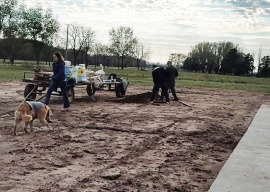 El Gobierno Municipal se encuentra renovando los espacios públicos y sumando nuevos parques, con más juegos y mobiliario de exterior. En este sentido, se esta poniendo en valor un espacio verde de Barrio Procrear, zona Costanera, dónde ya está concretado un playón de cemento para colocar las baldosas de caucho, y sobre ellas diferentes juegos, conformando así una Plaza Blanda. El secretario General y Coordinación Municipal, Camilo Alessandro, recorrió la obra / Foto: Municipalidad En los próximos día se estará inaugurando, para que la primera infancia pueda divertirse y disfrutar de este parque, junto a sus familias.