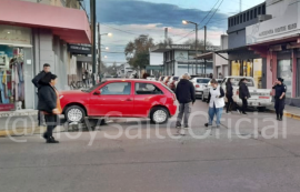 Un herido fue el saldo de un violento choque registrado este lunes por la tarde en el centro de Salto entre un automóvil y una motocicleta. El siniestro vial se registró cerca de las 18:00 horas en la esquina de Buenos Aires y Olavarría, cuando una moto Guerrero Trip y un automóvil Volkswagen Gol impactaron violentamente.  Tras la colisión, el vehículo de mayor porte terminó arriba de la vereda. El automóvil era conducido por una mujer mayor de edad - única ocupante -, mientras que el motovehículo era abordado por dos jóvenes, entre ellos su conductor, un menor de 14 años que resultó herido y debió ser asistido por el SAME y trasladado en ambulancia al Hospital local. Su acompañante, según informaron a este medio agentes policiales, se retiró de la escena.